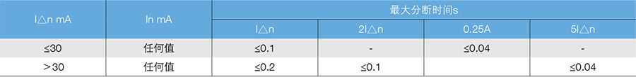 延时型漏电断路器的剩余电流分断时间